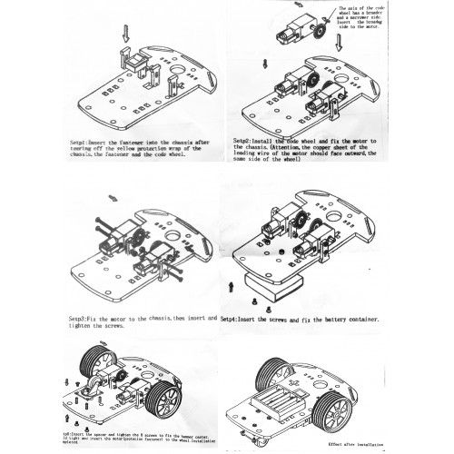 Toertal van de motoren (zonder belasting, met wiel): 3V - 120RPM; 6V - 200RPM; 7,2V - 250RPM.